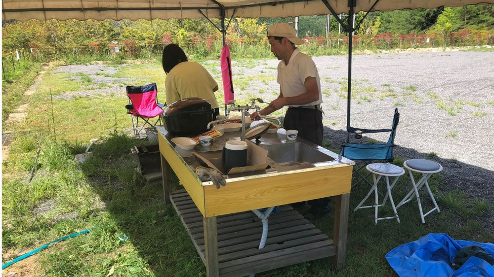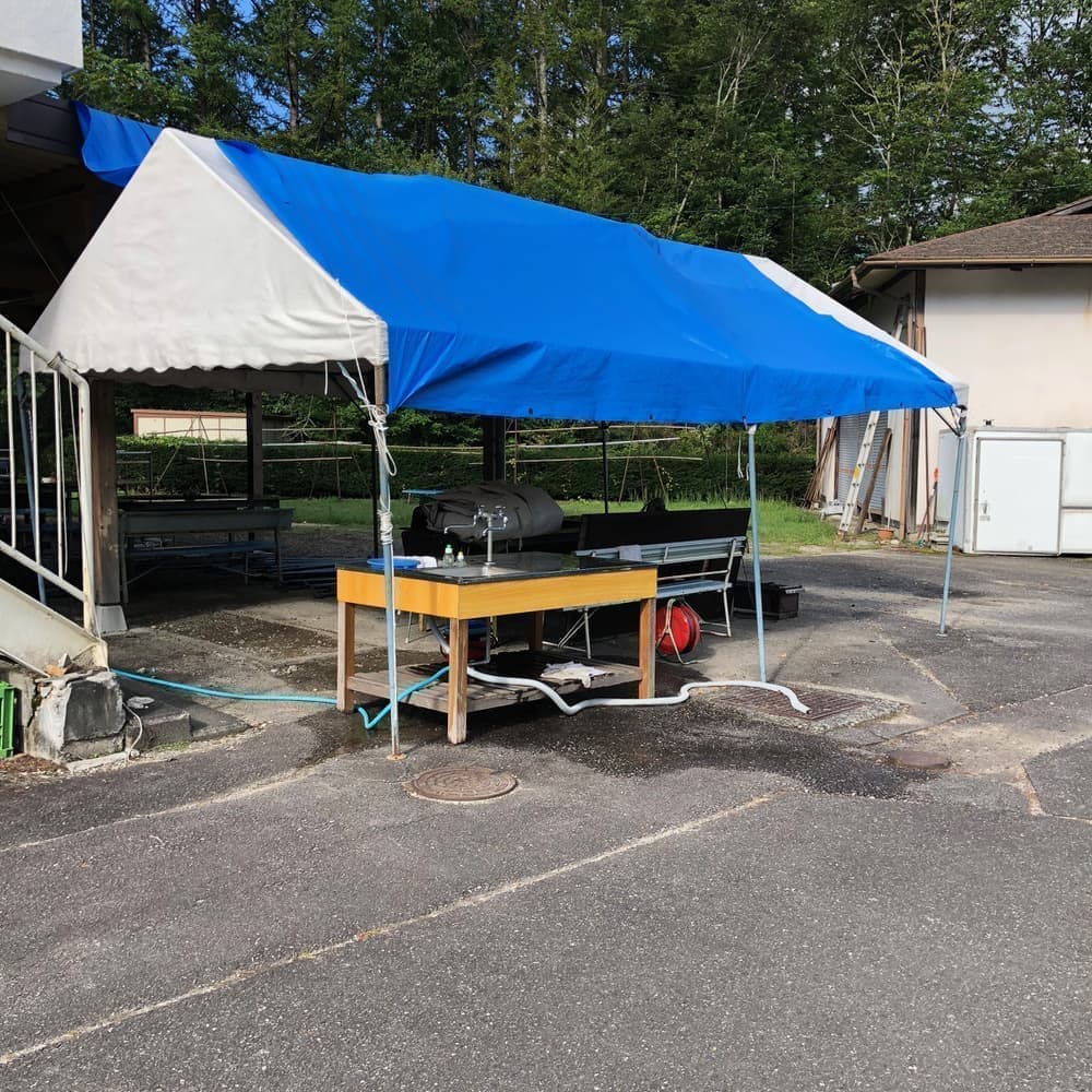 屋根下が使えるので、雨天でも安心。トイレや水道もすぐ近くで