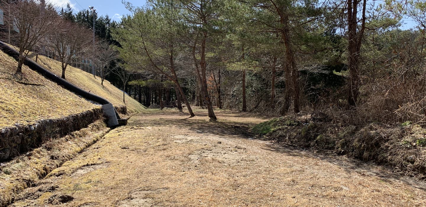 トイレ〇、水道〇、電源〇(駐車場トイレから延長コードが届く範囲)、焚火〇、テント〇、ペット〇