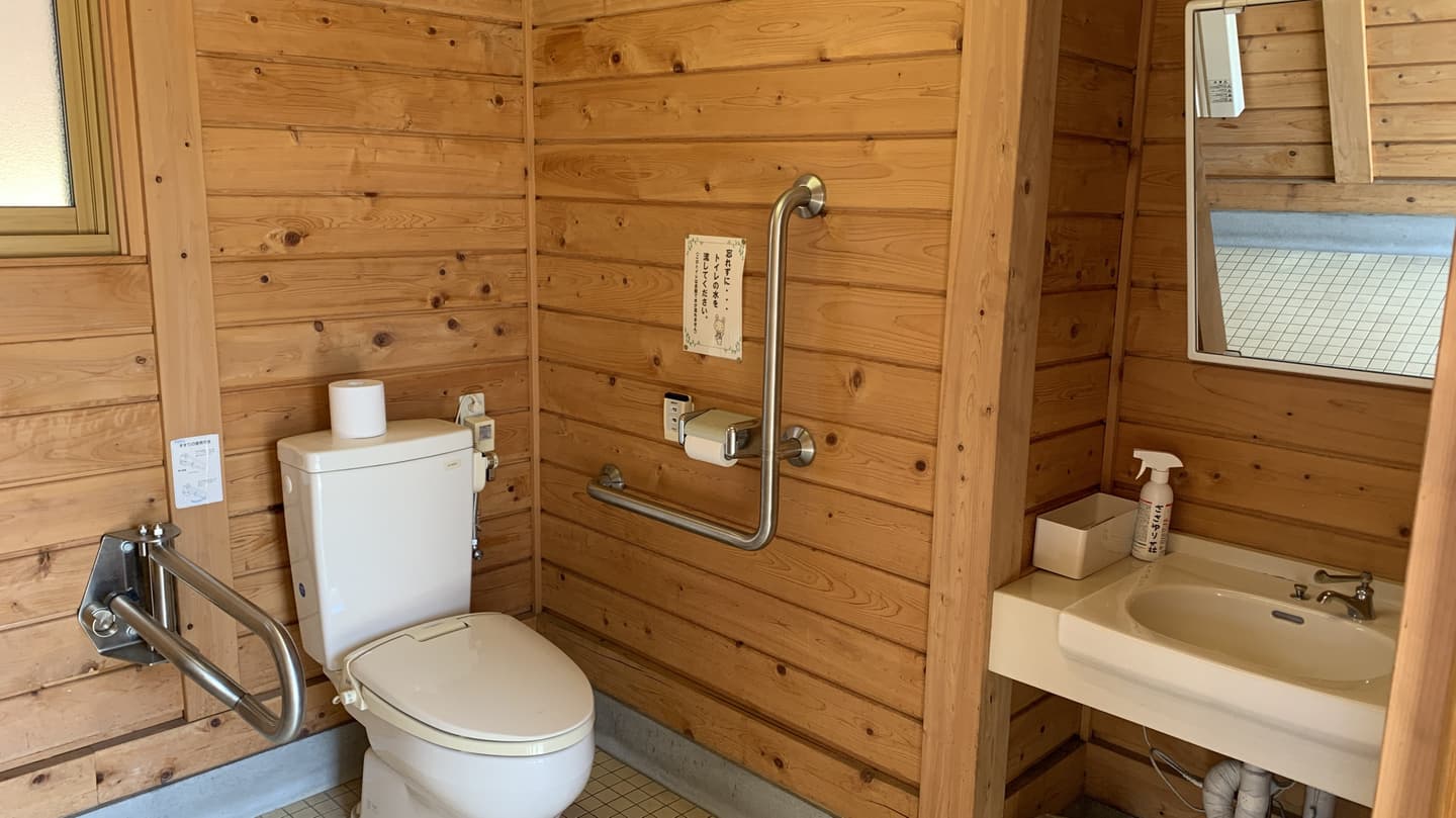女性用トイレは和式、バリアフリートイレは洋式、男性用トイレは和式